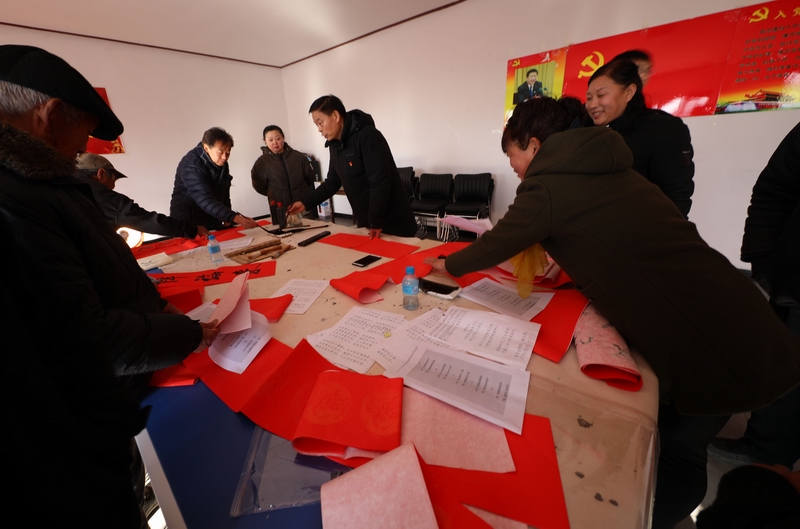 在李家堡期间,机关工会组织开展了“新春送福到农家”活动,除提前为农户写好了福字、春联,并随帮扶责任人送入农户外,还现场为村民精心书写了一副副寓意吉祥、反映新时代新农村新气象的春联和福字,为李家堡村民拍摄了全村福照片,并应村民要求,精心创作了数十幅书法作品。