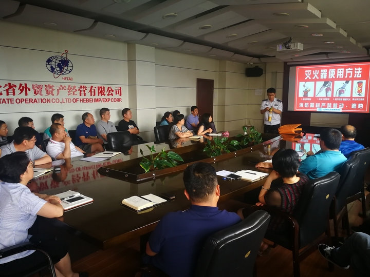 为提高全员消防安全意识和应急技能,6月25日下午,省外贸资产公司组织驻石出资企业分管安全生产工作人员和公司本部全员开展了安全警示教育暨消防知识讲座。