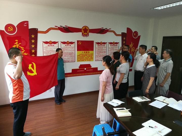 活动开始,全体党员深情合唱《没有共产党就没有新中国》,表达对党的九十八岁生日的深情祝福;接着,面对鲜艳的中国共产党党旗,举行了庄严的新党员入党宣誓仪式,老党员重温了入党誓词;第三,集中学习了习近平总书记关于“人民对美好生活的向往就是我们的奋斗目标和认真学习党章、严格遵守党章”的重要论述。随后,支部书记折燕春以“不忘初心、牢记使命,无愧新时代、创造新业绩”为题给支部党员上了精彩的党课,与大家分享了“不忘初心、牢记使命”主题活动体会。
