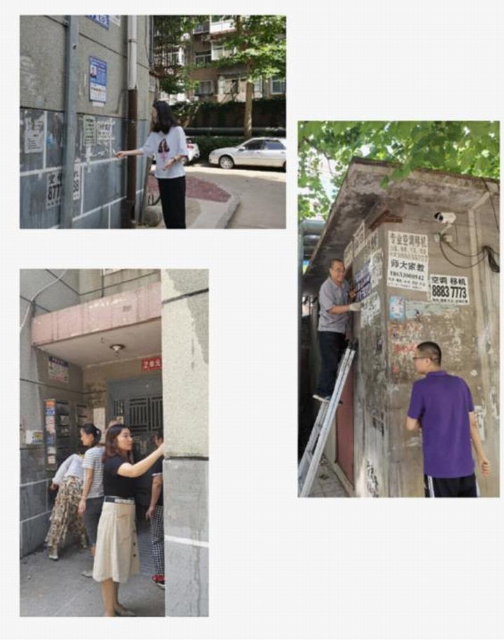 有的拿棍子把小广告浸湿,有的拿小铲子一点点铲,有的拿铁刷子一点点刷,有的拿涂料一遍遍涂抹;