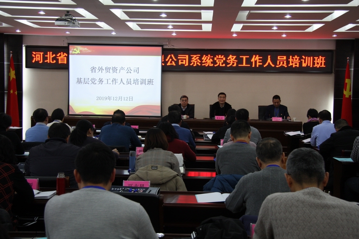 为深入学习贯彻习近平新时代中国特色社会主义思想和党的十九大、十九届二中、三中、四中全会精神,牢牢把握新时代党建工作各项要求,进一步提高基层党务工作人员业务素质和履职能力,持续深入推进基层党组织标准化、规范化建设,推动基层党建质量水平整体提升,为企业科学、高质量发展提供坚强组织保障,12月12日,省外贸资产公司在正定县委党校组织开展了为期2天的系统党务工作人员集中培训。公司党委书记、董事长、总裁张元贞出席并作开班讲话和讲党课,省国资委党建处处长刘慧昌莅临指导作专题培训。公司系统企业党务分管领导、组织员(党建联系员)、党支部书记、党支部组织委员、宣传委员等70余人参加培训。