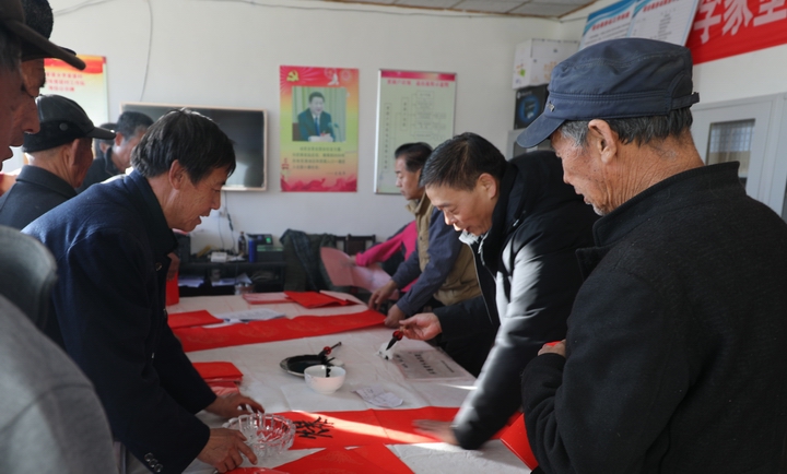 活动期间,机关工会组织开展了“新春送福”活动,除提前为农户写好了福字、春联,随帮扶责任人送入农户外,还现场为村民精心书写了一副副寓意吉祥、反映新时代新农村新气象的春联和福字,为寒冬的山村增添了温暖喜庆的气氛。机关工会还为李家堡村民拍摄了全村福照片,并应村民要求,精心创作了数十幅书法作品。公司党委常委杨景山还为李家堡村两委送上“政通人和”等书法作品,寓意李家堡村两委与省外贸资产公司齐心共谋扶贫大计,村民安居乐业、幸福和顺。
