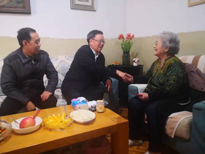 在91岁高龄的离休老干部、老党员张英家里,李光同志代表省国资委党委送去节日的问候和诚挚的祝福,并送去了慰问金和慰问品。