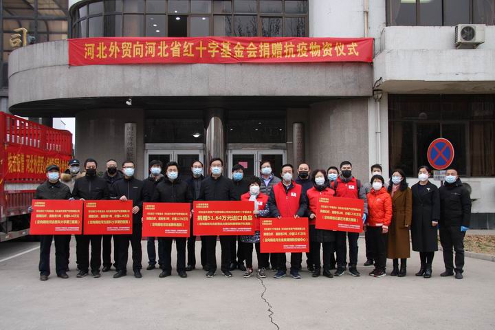 为深入落实习近平总书记提出的“医务人员是战胜疫情的中坚力量,务必高度重视对他们的保护、关心、爱护”重要指示,彰显国有企业的使命担当,表达对一线医务人员的关心关爱,2月26日,省外贸资产公司通过河北省红十字基金会公募捐赠平台,向承担我省定点救治、定点检测、定点发热门诊救治和向湖北派出医疗队的五家医疗机构捐赠了一批价值51.64万元的进口食品,并送去了慰问信,用实际行动向奋战在一线的医务人员和援鄂医务人员家属表达敬意、关心和爱护,全力支持医疗战线打赢新冠肺炎阻击战!