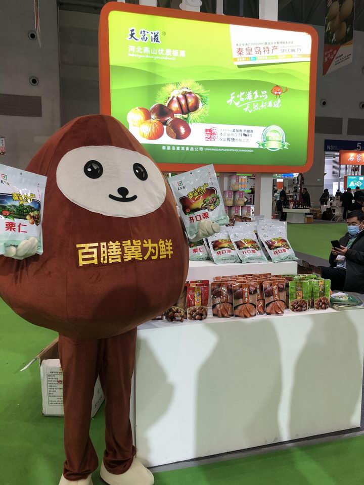 河北展示区由河北省农业厅统一租赁场地,以各市为单元统一风格装饰,主题是“百膳冀为鲜”,各种特产造型萌宠和礼仪宣传小姐在河北展示区长时间宣传造势,起到了烘托气氛的作用。此次展会秦皇岛富滋食品公司为秦皇岛市农业局推荐的8家企业之一,展示了软包装栗仁、软包装开口栗、软包装甘薯干、软白桃罐头系列产品。所展示产品由于地域优势明显,长期对日本高端客户出口形成的优秀稳定的高端品质,深受参会客户的关注,很多当地消费者驻足品尝购买。