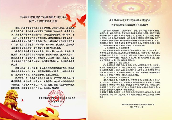当前,河北省疫情防控形势严峻复杂,防控任务异常艰巨。在疫情防控的关键时刻,省外贸资产公司党委、团委积极号召广大干部职工在确保自身安全的前提下,发挥自身优势,积极参与到社区疫情防控志愿服务中去,勠力同心,抗击疫情。