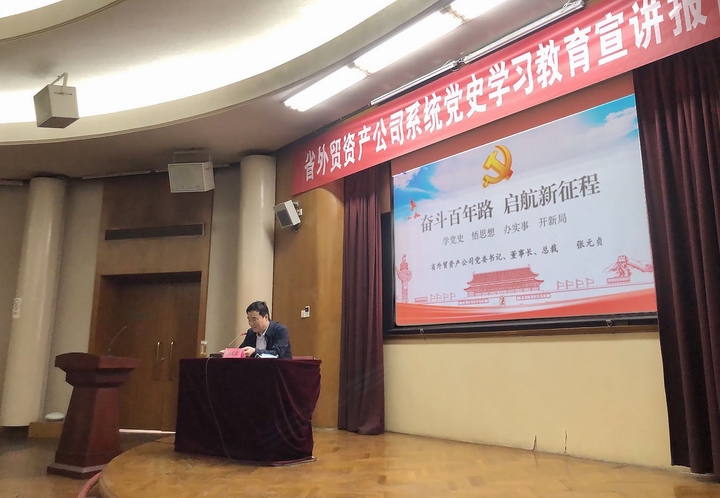 按照中央、省委、省国资委党委部署要求,4月8日,省外贸资产公司召开党史学习教育宣讲报告会。公司党委书记、董事长、总裁张元贞作宣讲报告。公司党委常委、副总裁杨景山主持会议。公司领导班子成员、公司系统各级党组织书记及公司总部全体职工参加了报告会。