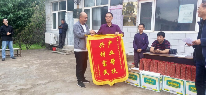 随后,箱包致富带头人代表全体村民向公司赠送了锦旗,并对公司持续开展产业帮扶致以崇高的敬意。活动最后,齐山水、张运河和部室负责人亲手为村民送上了中秋月饼和食用油。