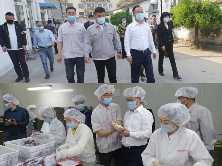 张士兆一行就公司发展规划、出口创汇,市场销售、以及落实常态化疫情防控措施等情况,听取了公司领导的汇报,并深入生产加工车间参观考察。