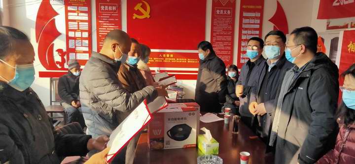 图为公司党委领导与当地领导,共同为荣获年度先进个人的群众颁发荣誉证书及奖品