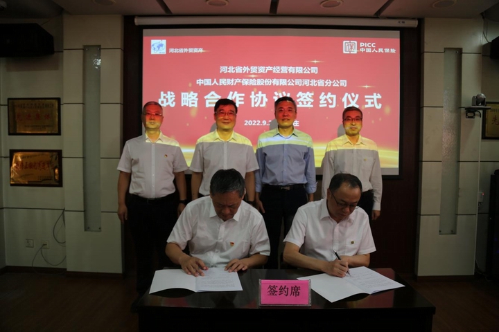 9月22日上午,best365足球官网(以下简称:省外贸资产公司)与中国人民财产保险股份有限公司河北省分公司(以下简称:人保财险河北分公司)签署战略合作协议。双方将围绕创新保险机制、健全保障保险合作机制、推进信息共享和健康产业协同等方面,开展全方位、深层次合作。