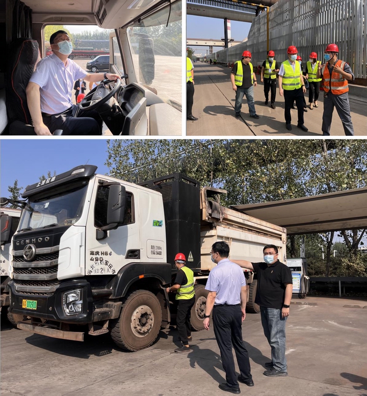 张元贞一行先后对敬业集团场内充电站、北区烧结球团原料车间、北区钢渣车间等地进行了实地调研,详细了解了项目现场的安全管理、疫情防控、工作流程、业务区域、人员及车辆配备情况等相关事宜,更直观全面地了解了项目的实际运作情况。
