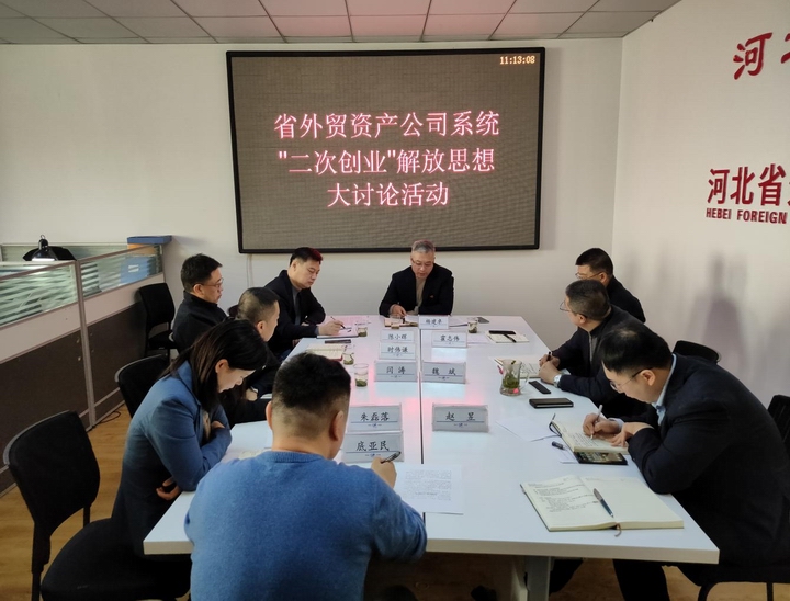 按照省外贸资产公司《关于开展“二次创业”解放思想大讨论活动的通知》要求,2月28日上午,在河北广告公司会议室召开“二次创业”解放思想大讨论座谈会,省外贸资产公司党委委员、副总经理杨建卓,改革发展部部长陈小辉、副部长闫涛,财务管理部副部长时伟谦,河北广告、河北扬羽领导班子成员参加会议。