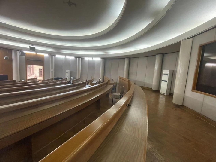 地面:PVC地板,可活动主席台,主席台采用实木复合木地板;