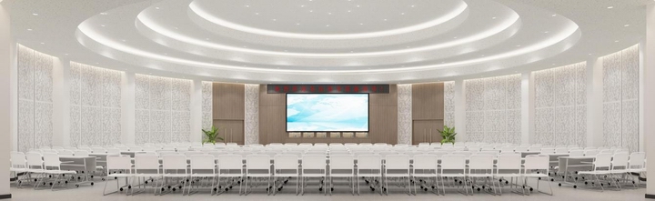 主席台(地面、背景):轻钢龙骨,木饰面,LED电子显示屏及LED会标屏的预留预埋;