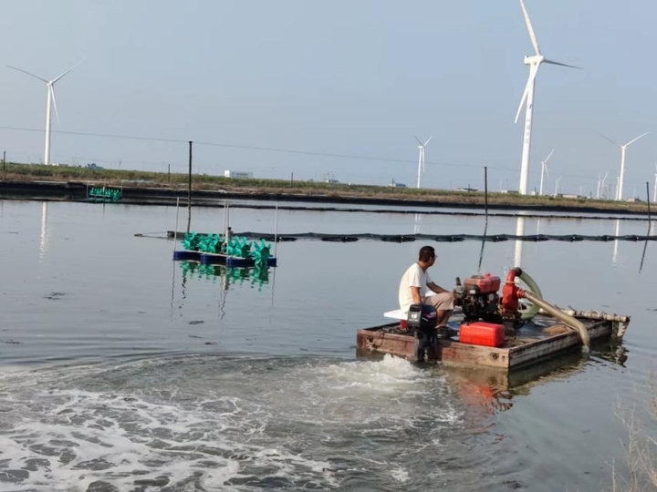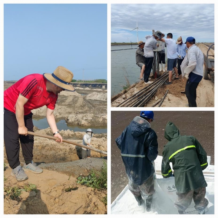 公司的“老兵党员突击队”积极发挥模范带头作用,处处争当先锋表率。他们每天坚持早晚巡圈,正午时分带头顶着烈日在参圈里泼洒杀藻药液,穿着厚厚的雨衣、衩裤忍着酷暑喷洒漂白粉;夜晚坚持科学换水,适时调节参圈水深,避免池底水温快速上升;定期检查池底海参情况,根据需要及时采取相应措施,确保良好的养殖环境和海参的健康生长。