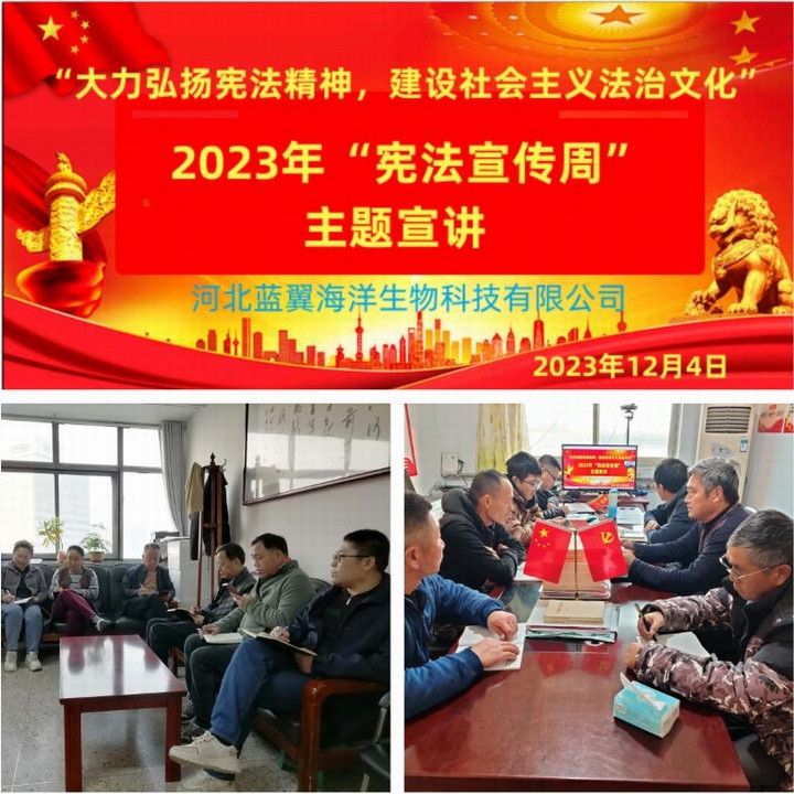 为全面贯彻党的二十大精神,深入学习宣传贯彻习近平法治思想,认真学习宣传贯彻习近平总书记关于宪法的重要讲话和指示批示精神,大力加强宪法学习宣传,强化职工知法、守法意识,2023年12月4日,河北蓝翼公司以视频会议形式在石家庄公司本部和乐亭分公司同时开展以“大力弘扬宪法精神,建设社会主义法治文化”为主题的宪法宣讲活动。