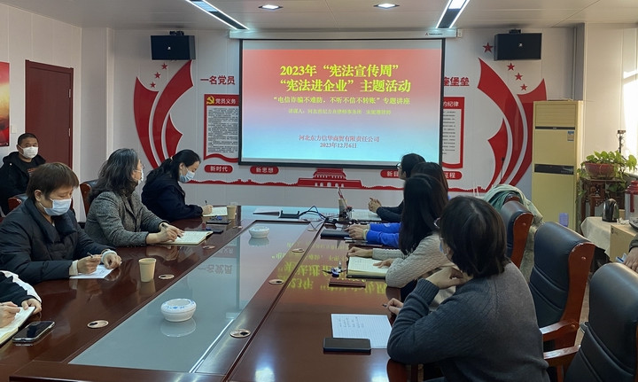 为深入学习贯彻习近平新时代中国特色社会主义思想,大力弘扬宪法精神,进一步增强干部职工的宪法意识,12月6日,东方信华按照省外贸资产公司安排部署,围绕“大力弘扬宪法精神,建设社会主义法治文化”的主题,组织开展了“宪法进企业”活动,并邀请公司常年法律顾问河北世纪方舟律师事务所宋妮珊律师开展专题讲座。
