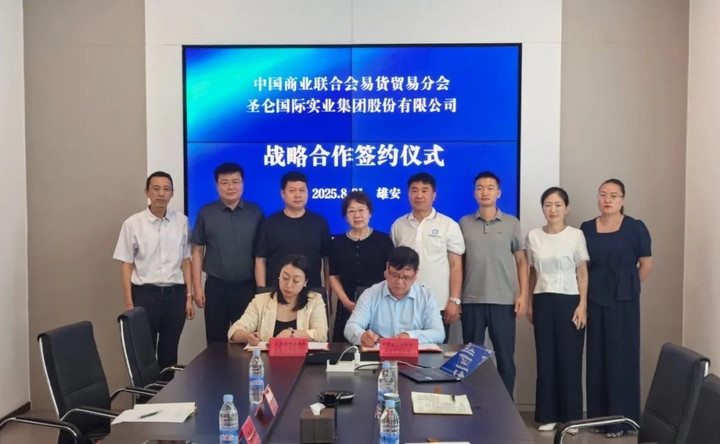 8月21日,圣仑国际实业集团股份有限公司与中国商业联合会易货贸易分会在雄安新区举行战略合作签约仪式。圣仑国际实业集团股份有限公司副董事长、总经理胡筱,中国商业联合会特邀副会长、中国商业联合会易货贸易分会会长李兴远代表双方签约。